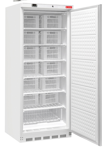 Armario de congelación digital 1 puerta ciega blanco de 600 Litros de volumen + 12 cajas + 1 cesto, temperatura de trabajo de -22º a -18ºC.